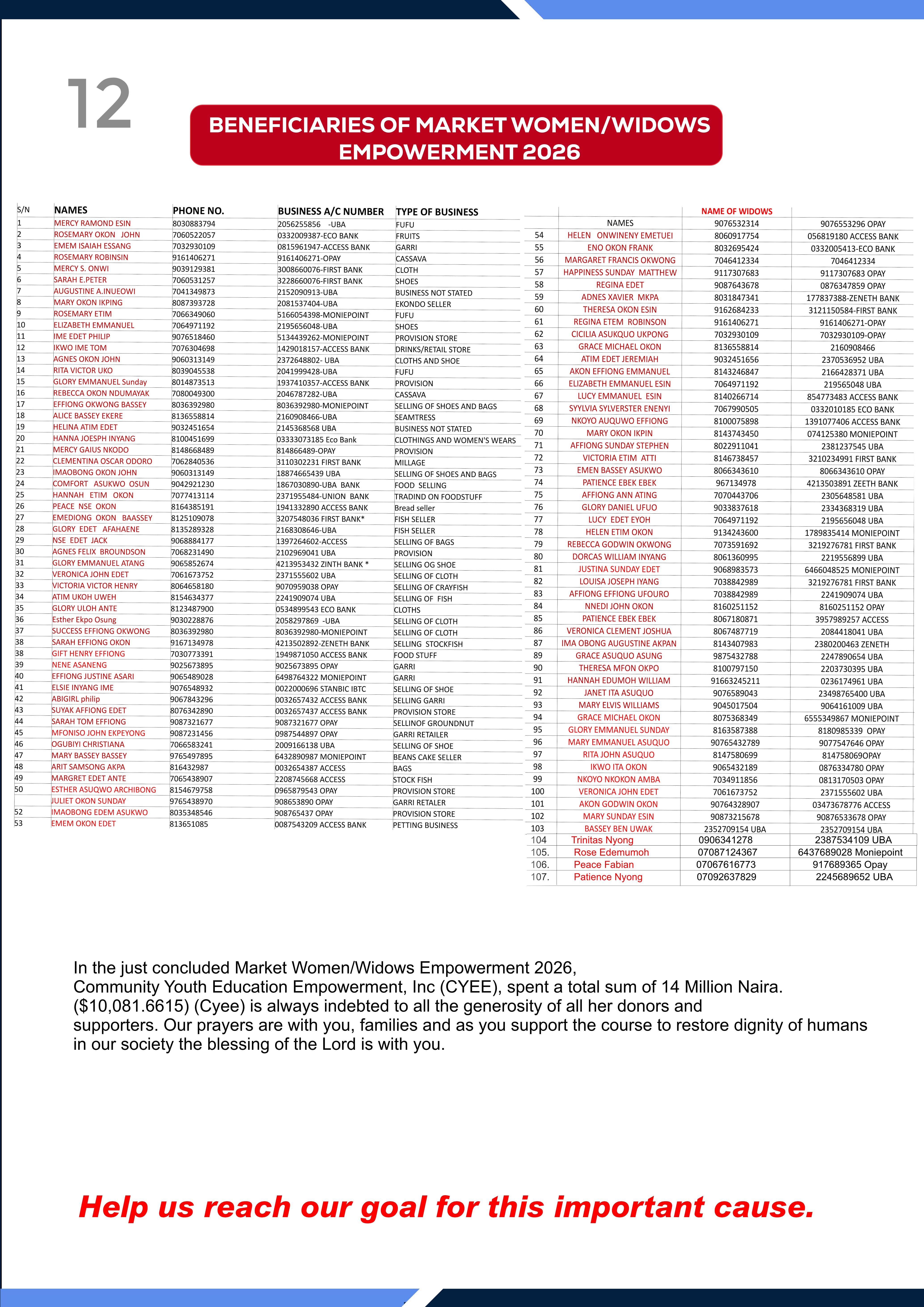- Feeding the elderly, widows, and displaced families.